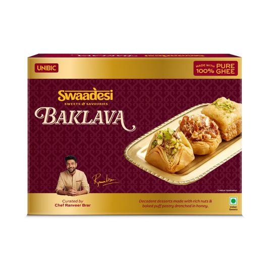 Swaadesi Assorted Baklava Box - 200grams (Indian Sweet Made with 100% Pure Ghee)